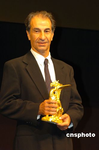 10月28日下午,第20屆東京國(guó)際電影節(jié)在東京澀谷文化村舉行頒獎(jiǎng)典禮,以色列電影《樂隊(duì)來(lái)訪》獲得了最高獎(jiǎng)項(xiàng)金麒麟大獎(jiǎng)。圖為該片導(dǎo)演Eran Kolirin獲獎(jiǎng)后手捧金麒麟獎(jiǎng)杯發(fā)表感言。中新社發(fā) 滕劍峰 攝