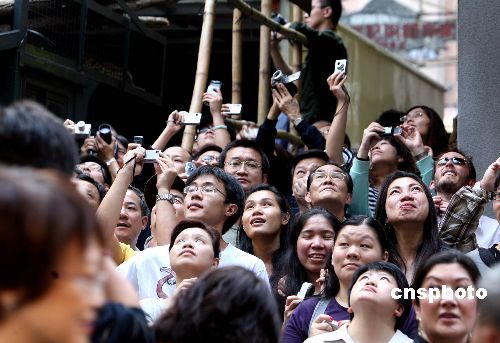 耗資十八億港元的美國好萊塢巨片《蝙蝠俠黑夜之神》十一月九日在香港中環(huán)電梯拍攝取景,男主角基斯頓比爾在拍攝中卸下太陽鏡露出真容,旁邊數(shù)百群眾演員配合演出,如人潮般的觀眾被阻隔在天橋下翹首觀看。該片一連七天在香港取景,除地面街景外,更每日派出兩架直升機在港島上空拍攝建筑及維港夜景風貌。中新社發(fā) 王麗南 攝
