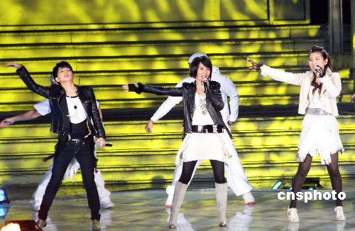 11月28日晚,臺(tái)灣知名組合S.H.E,韓國歌手安七炫放歌重慶市南川區(qū),為當(dāng)日開幕的首屆渝南黔北地區(qū)(南川)區(qū)域合作經(jīng)貿(mào)洽談會(huì)助興。中新社發(fā) 郭晉嘉 攝
