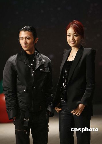 十二月十二日,香港知名歌手謝霆鋒、容祖兒在北京八一電影制片廠攝影棚,攜手為北京奧運歌曲《同在藍色星球上》放歌。目前,《同在藍色星球上》等十首奧運歌曲音樂電視正在緊張的制作之中,有望在2008年年初與觀眾見面。中新社發(fā) 盛佳鵬 攝