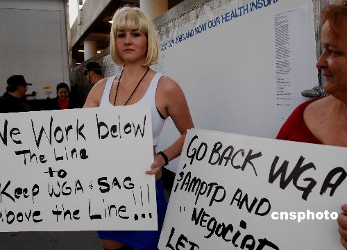 美國編劇協(xié)會在金球獎現(xiàn)場抗議示威