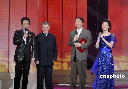 一年一度的央視“2008年春節(jié)聯歡晚會我最喜愛的優(yōu)秀節(jié)目”評選結果在元宵晚會上揭曉,趙本山和宋丹丹的小品抱得大獎,王寶強這匹“黑馬”如愿以償獲頭籌,一等獎內唯一的舞蹈類節(jié)目是廣受好評的《飛天》。中新社發(fā) 李原野 攝