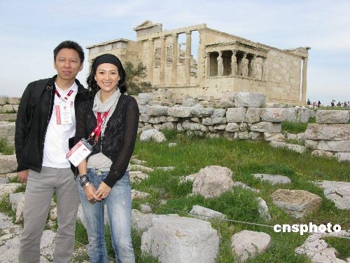 當(dāng)?shù)貢r(shí)間3月22日下午,搜狐公司董事局主席兼首席執(zhí)行官張朝陽、搜狐奧運(yùn)官網(wǎng)特約記者章子怡與奧運(yùn)官方網(wǎng)站圣火報(bào)道團(tuán)一行前往帕納辛納克斯泛雅典體育場、衛(wèi)城等雅典遺址,沿著奧運(yùn)圣火傳遞的足跡,率先為中國億萬網(wǎng)民傳遞當(dāng)?shù)貍鋺?zhàn)奧運(yùn)圣火傳遞的盛況。圖為張朝陽(左)與章子怡在雅典衛(wèi)城采風(fēng)。中新社發(fā) 沈晨 攝