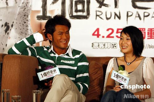 4月23日,奶茶劉若英、古天樂在臺北為愛情結晶喜劇《一個好爸爸》造勢,劉若英表示,因為本片讓她收到從未和她住在一起的爸爸寫給她的第一封信,信中表達了對失去她成長的生命片段感到遺憾的真情表白,讓她十分感動。本片由成龍親自監(jiān)制,是張艾嘉繼《20.30.40》后籌備三年的執(zhí)導力作。她在此片突破常規(guī)染指黑幫的花花世界,用豐富和幽默真摯情感打動觀眾,成為導演生涯中最有創(chuàng)作力一次。男女主角古天樂、劉若英飾演一對經(jīng)歷廿年愛情試煉的夫妻,激情有默契,雋永而清新!兑粋好爸爸》將于4月25日在臺灣公映。中新社發(fā) 杜洋 攝