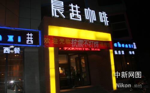 圖:石家莊一咖啡廳打出“抗震不打烊”的口號(hào)
