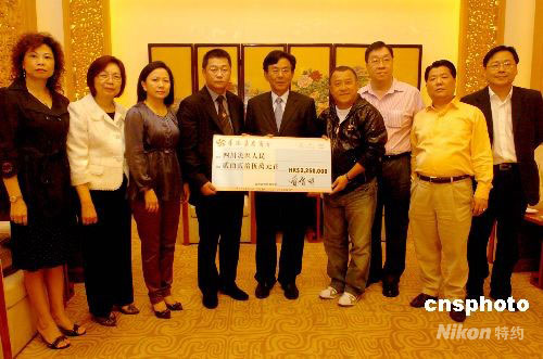 明星曾志偉等代表香港嘉應(yīng)商會(huì)向四川地震災(zāi)區(qū)捐款