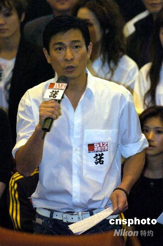 五月二十二日,“演藝界‘五·一二’關愛行動”在香港舉行新聞發(fā)布會,召集人劉德華出席并承諾將會出全力為四川地震受災群眾重建家園。中新社發(fā) 譚達明 攝