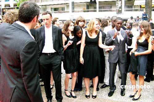 5月24日,是第61屆法國戛納國際電影節(jié)的最后一個競賽日,德國電影大師文德斯的《帕勒莫約定》和法國影片《墻壁之間》的正式登場,宣告本屆電影節(jié)各個單元的所有參賽片、參展片全部亮相完畢。圖為《墻壁之間》主演弗朗索瓦·貝戈多和眾學(xué)生演員準(zhǔn)備走上紅地毯。中新社發(fā) 司樂 攝