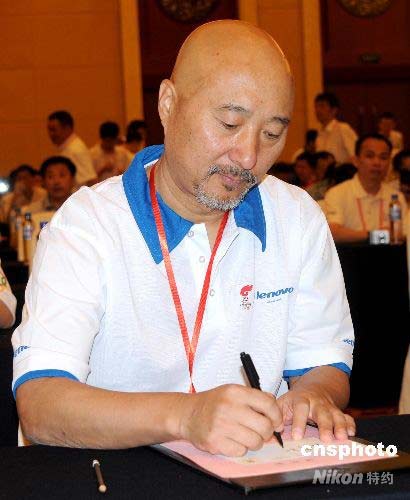 2008年5月26日上午,奧運火炬手、著名影視明星陳佩斯(左二)向四川地震災區(qū)捐款。當天奧運火炬接力南京站傳遞火炬手、護跑手集結(jié)南京,向四川地震災區(qū)默哀、捐款。