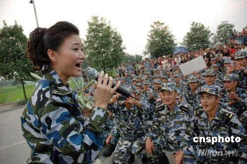 宋祖英用歌聲慰問抗震救災(zāi)的海軍陸戰(zhàn)隊員
