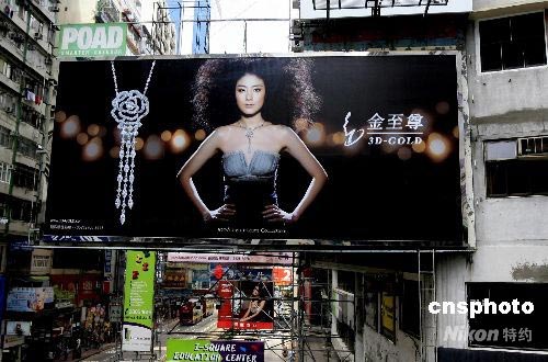 香港樂壇明星陳慧琳十八日晚在紅磡體育館舉行演唱會時突然宣布婚訊,嫁給與之相戀了十六年的男友劉建浩,并與歌迷約定,結(jié)婚后不會退休,待生了孩子后會再來紅館開演唱會。曾在美國修讀建筑的劉建浩,畢業(yè)后回港打理父親制衣生意,后自組公司。圖為香港街頭陳慧琳代言的巨大廣告。中新社發(fā) 王麗南 攝