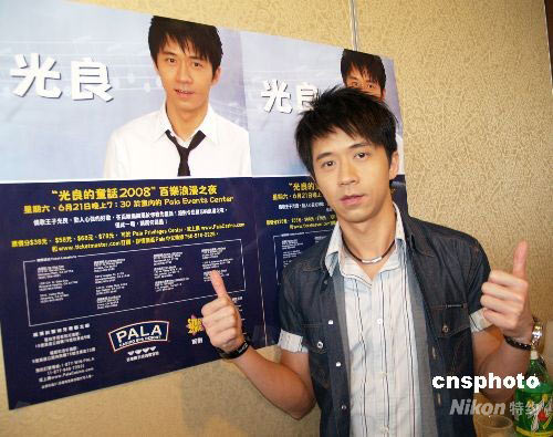 6月19日,馬來(lái)西亞“情歌王子”光良飛抵美國(guó)洛杉磯,舉辦《光良的童話2008百樂(lè)浪漫之夜》,讓洛杉磯廣大華人歌迷有機(jī)會(huì)與光良近距離接觸,受到熱烈歡迎。中新社發(fā) 盧威 攝