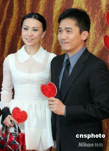 6月21日晚,梁朝偉攜手劉嘉玲在上海出席《東邪西毒》終極版慈善首映,向四川災(zāi)區(qū)獻(xiàn)出自己的愛心,本場電影的票房將悉數(shù)捐給四川災(zāi)區(qū)。中新社發(fā) 湯彥俊 攝
