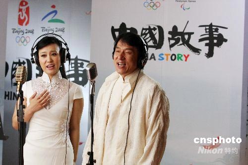 2008年7月8日,北京,2008奧林匹克公園中心區(qū)文化展示活動(dòng)“中國故事”的主題歌《中國看見》正式發(fā)布。此歌由國際巨星成龍與著名歌唱家譚晶攜手演唱。中新社發(fā) 博芽影像 攝