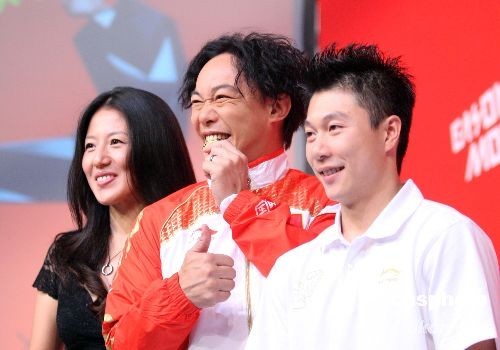 8月28日,香港歌手陳奕迅在北京舉行“EASON’S MOVING ON STAGE 14世界巡回北京演唱會”新聞發(fā)布會,宣布將于9月28日在工人體育場舉行首場北京個人演唱會。奧運金牌選手李小鵬、楊揚(yáng)以歌迷身份現(xiàn)身發(fā)布會向陳奕迅贈送特別禮物。中新社發(fā) 廖文靜 攝