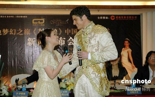 美國百老匯歷史上最著名的音樂劇之一《灰姑娘》,即將進行中國巡演上海站的演出,助陣二00八中國上海國際藝術(shù)節(jié)。九月六日,該劇主演穿著舞臺上的華美服飾,在新聞發(fā)布會上即興演繹劇中舒緩的情歌,為上海之行造勢。中新社發(fā) 南星 攝