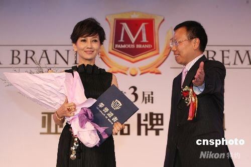 九月九日,第三屆亞洲品牌盛典頒獎(jiǎng)典禮在香港迪士尼國(guó)際會(huì)議中心隆重舉行,香港著名演員趙雅芝榮獲“亞洲品牌代言人年度大獎(jiǎng)”。中新社發(fā) 武仲林 攝