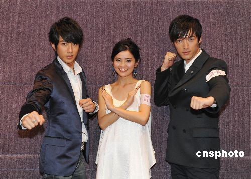 10月9日,馬楚成最新功夫愛(ài)情巨制《劍蝶》上映在即,主演吳尊、阿Sa、胡歌以及武術(shù)指導(dǎo)程小東專(zhuān)程趕到北京,與導(dǎo)演馬楚成一同接受各大媒體專(zhuān)訪(fǎng)。初次亮相電影銀幕的吳尊與阿Sa首次攜手,馬楚成對(duì)他們的表現(xiàn)贊不絕口,更是給出了“前途無(wú)限”的評(píng)價(jià)。而《劍蝶》對(duì)胡歌也有著特殊的意義,這是他車(chē)禍?zhǔn)軅笫状纬鲅莸淖髌贰?jù)了解,《劍蝶》將于10月16日在全國(guó)上映。 中新社發(fā) 李學(xué)仕 攝