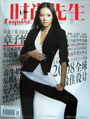 繼06年2月登上過(guò)《時(shí)尚先生》封面兩年多后的今天,章子怡再次成為該雜志11月號(hào)的封面人物。與上一次封面上清純可人的樣子不同,今次章子怡以冷艷中性女強(qiáng)人的造型出現(xiàn)在封面上,整體感覺(jué)與《尖峰時(shí)刻Ⅱ》中的角色造型頗為相似。