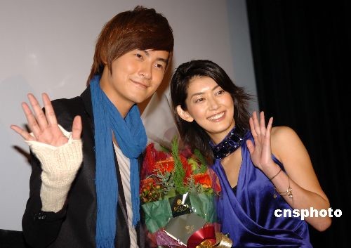 11月18日,臺灣人氣小生鄭元暢在東京助陣日本版《惡作劇之吻》的DVD發(fā)賣,并首次與日版“相原琴子”的扮演者佐藤蘭子碰面。二人本別披露各自的拍攝內幕,令現(xiàn)場近二百名粉絲大笑不已。圖為鄭元暢與佐藤蘭子在活動現(xiàn)場向合影。中新社發(fā) 朱沿華 攝