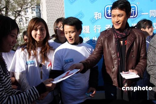 陸毅派傳單 為“大學(xué)生防艾志愿者聯(lián)盟”助陣