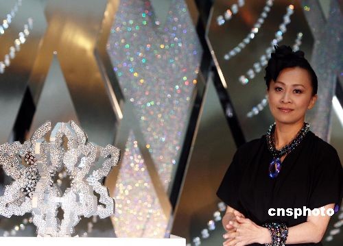 12月5日,香港藝人劉嘉玲在上海出席水晶圣誕樹亮燈儀式。中新社發(fā) 湯彥俊 攝