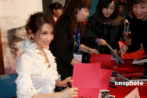 1月7日,李冰冰帶著新書《李冰冰:十年·映畫》在北京國際展覽中心召開新聞發(fā)布會,并把新書獲得的首批版稅捐給了聯(lián)合國兒童基金會。現(xiàn)場不少影迷專程從外地飛赴北京趕來給李冰冰獻花、加油。而為了感謝影迷的支持,李冰冰也在現(xiàn)場為部分讀者簽名贈書。中新社發(fā) 鄭雄增 攝