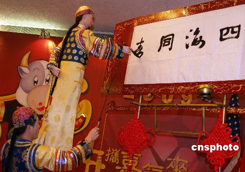 1月16日,中國駐洛杉磯總領(lǐng)館舉行“2009華僑華人新春招待會”,中領(lǐng)館多功能大廳大紅燈籠高高掛,充滿濃濃的過年味?傤I(lǐng)事張云率全體領(lǐng)事與600多位華人華僑代表歡聚一堂,共慶牛年的到來。中新社發(fā) 盧威 攝