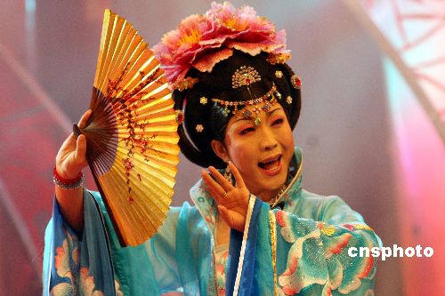 背景資料:舞臺(tái)上的李玉剛是一個(gè)28歲的東北農(nóng)村小伙子,用男扮女裝的表演和男唱女腔的歌聲,闖入央視《星光大道》,并獲得2006年度季軍。舞臺(tái)上的“絕色佳人”李玉剛,在生活中是一個(gè)聲音陽剛、長相帥氣的小伙子。李玉剛的老家在吉林省公主嶺市一個(gè)偏僻的農(nóng)村,和很多東北人一樣,李玉剛的母親也很喜歡唱二人轉(zhuǎn)。受母親的影響,他從小喜歡唱歌。1996年高中畢業(yè)后的李玉剛考取吉林省藝術(shù)學(xué)院,但由于家里供不起,李玉剛不得不放棄學(xué)業(yè),17歲開始出去闖蕩。2006年夏天,一次機(jī)會(huì)讓全國電視觀眾認(rèn)識(shí)了李玉剛。男扮女裝的李玉剛在星光大道上一出現(xiàn),觀眾驚訝不已,很多人都不相信他是個(gè)小伙子!栋酝鮿e姬》、《貴妃醉酒》是京劇藝術(shù)中的兩個(gè)傳統(tǒng)曲目,在表演這兩個(gè)節(jié)目的過程中,李玉剛借鑒了京劇藝術(shù)的手段,加入了很多表現(xiàn)方式。中新社發(fā) 牛書培 攝