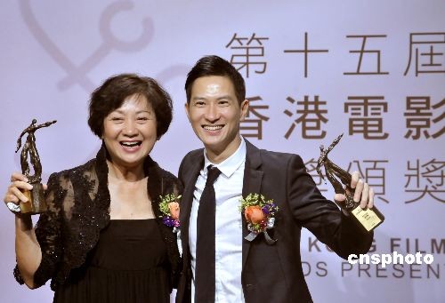 二月十六日,香港電影評論學(xué)會(huì)在香港電影資料館舉行“第十五屆香港電影評論學(xué)會(huì)大獎(jiǎng)?lì)C獎(jiǎng)典禮”。男影星張家輝憑在電影“證人”的出色演出、及女藝人鮑起靜在電影“天水圍的日與夜”有卓越的發(fā)揮,分別獲電影評論學(xué)會(huì)頒最佳男女演員獎(jiǎng)項(xiàng)。中新社發(fā) 鄧慶樂 攝
