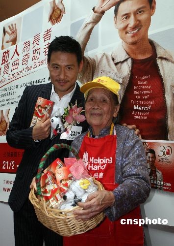 二月二十一日,“愛心曲奇大使”張學(xué)友在香港出席伸手助人協(xié)會舉行的義賣活動,為協(xié)會旗下的長者院舍籌集善款。中新社發(fā) 武仲林 攝