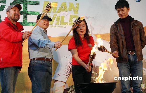 3月18日,Discovery探索頻道在北京推出全球觀眾狂熱追捧的系列探險節(jié)目《荒野求生》(Man VS Wild)播映儀式,將給中國地區(qū)觀眾帶來終極野外生存指南,同時舉行中國特輯《荒野求生》啟動儀式,《荒野求生》節(jié)目主持人兼探險家貝爾吉羅斯亦將8月來中國,首次拍攝《荒野求生》中國特別專輯。《荒野求生》中國特輯將于2010年2月與中國電視觀眾見面,并將在Discovery探索頻道全球電視網(wǎng)播出。電視劇《我的團(tuán)長我的團(tuán)》主演段奕宏亮相中國特輯《荒野求生》啟動儀式。中新社發(fā) 錢興強(qiáng) 攝