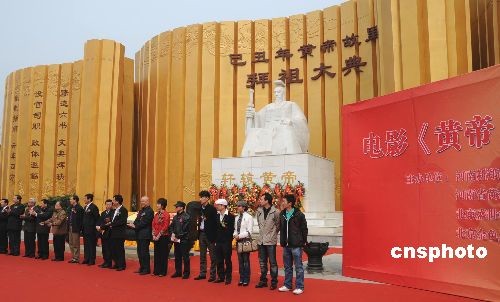 三月二十八日上午,大型史詩(shī)電影《黃帝》在河南新鄭黃帝故里舉行啟動(dòng)儀式。該片將以黃帝統(tǒng)一萬(wàn)國(guó),開創(chuàng)基業(yè),創(chuàng)制律歷,發(fā)明文字,植桑養(yǎng)蠶,研究醫(yī)學(xué)等生平、生活和思想為藍(lán)本,向世人講述黃帝與自然、社會(huì)、人的交往、斗爭(zhēng),進(jìn)而和諧相處的歷程,講述一個(gè)民族英雄的成長(zhǎng)故事,一個(gè)中華始祖不屈不撓與命運(yùn)抗?fàn)幍臍v史。中新社發(fā) 史寶銀 攝