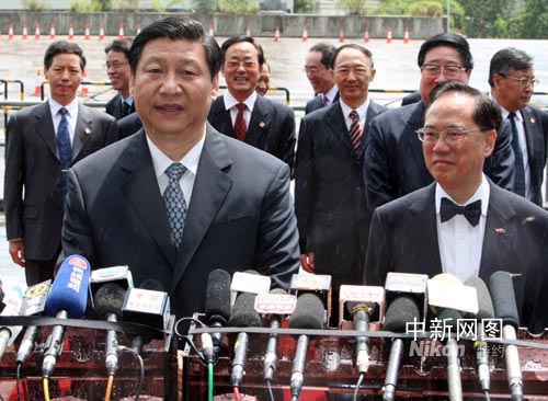 國(guó)家副主席習(xí)近平7月6日上午經(jīng)落馬洲進(jìn)入香港,實(shí)地了解2008年奧運(yùn)及殘奧馬術(shù)比賽的籌備情況和視察香港的近況。中新社記者 任海霞 攝