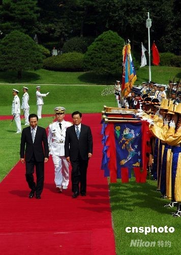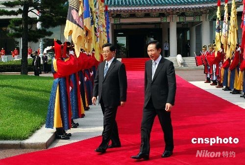 圖:李明博舉行隆重歡迎儀式歡迎胡錦濤訪問韓國