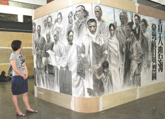 據(jù)報(bào)道,這幅抗日巨畫(huà),由五十多名大陸畫(huà)家、歷史學(xué)家花了五年半時(shí)間集體創(chuàng)作八年抗戰(zhàn)的故事,按真人比例實(shí)錄一千多名歷史人物,期間畫(huà)家歐治渝甚至用眼過(guò)度差點(diǎn)失明。巨畫(huà)按真人比例實(shí)錄一千多名歷史人物,畫(huà)卷高二米,總長(zhǎng)逾八百米,相當(dāng)于小學(xué)操場(chǎng)繞四圈,展場(chǎng)橫跨臺(tái)北中山紀(jì)念館內(nèi)外,堪稱“史上最高難度”。