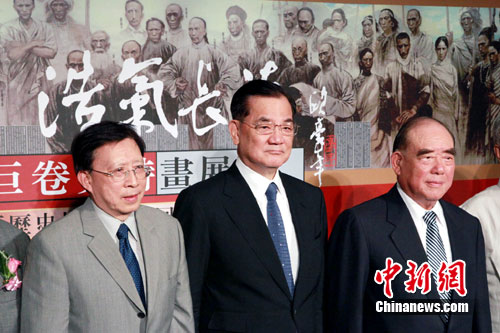 劉兆玄說,大陸畫家們用藝術(shù)來還原歷史,用畫作凸顯史詩,彌足珍貴。畫作能跨越海峽來臺展出更是壯舉。他說,兩岸分隔幾十年,2005年連戰(zhàn)與中共中央總書記胡錦濤會面,兩岸走向和平的道路,也是今天這項壯舉能夠順利舉行的時代意義。