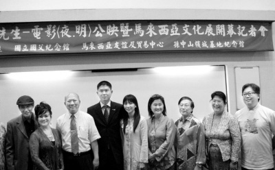 25日下午,馬來(lái)西亞檳城孫中山基地紀(jì)念館組團(tuán)在臺(tái)灣“國(guó)父紀(jì)念館”舉辦電影《夜·明》公映。《夜·明》敘述孫中山在檳城宣揚(yáng)革命的事跡,影片在檳城實(shí)景拍攝,由大陸、臺(tái)灣、香港和馬來(lái)西亞華人演員共同演出。1906年至1911年,孫中山曾5度到馬來(lái)西亞檳城,歷經(jīng)艱辛尋求當(dāng)?shù)孛癖娭С炙邉?dòng)黃花崗起義。圖為《夜·明》公映記者會(huì)上嘉賓合影。(記者 徐蕾)