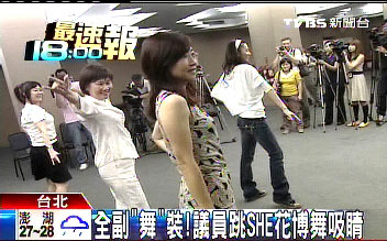 當(dāng)天下午,臺北市女議員脫下厚重套裝,換上輕便服,綁起馬尾,在臺北市議會勤練舞步。她們平日問政很犀利,跳起舞來也很認(rèn)真。