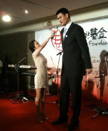 侯佩岑擔(dān)任“姚基金慈善之旅”記者會主持人,在訪問過程中,因為兩人身高差距太大,讓侯佩岑吃足了苦頭,她還把這逗趣的照片放在博客上與大家分享。