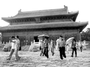 昨日下午,這些臺(tái)灣的旅游巨頭們饒有興趣地參觀了清西陵景區(qū)中葬有雍正皇帝的泰陵。在泰陵隆恩殿,大家一邊聽(tīng)導(dǎo)游員的精彩講解,一邊不時(shí)跑到龍袍前合影留念。