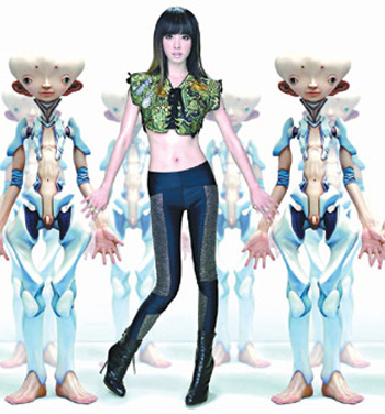 曾為LV設(shè)計(jì)暢銷包款的村上隆,這次與時(shí)尚雜志跨界合作,蔡依林拍攝封面時(shí)悠游于村上隆的“立體球”、“迷彩風(fēng)”與“未來機(jī)器人”作品,宛如現(xiàn)代版走進(jìn)奇幻世界的艾麗斯,視覺效果非常出色。