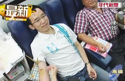 據(jù)報道,陳致中在8日利用跑選舉行程的空檔,前往捐血中心捐血250CC,對于主持人的說法顯得“有點(diǎn)尷尬”。