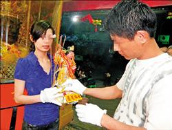 中新網(wǎng)8月11日電 你相信人神戀嗎?在嘉義有一名情路坎坷的男子,無意間幫朋友酬神,他說后來感應到神明闖入夢中,與其相戀,還說要以身相許,他果真由父母作主,把神明給娶回家供奉。這場另類婚禮還特地找來年輕女子代替女主角,雙方象征性互戴戒指完婚。