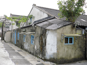 一位旁邊的住戶告訴記者,眼前的四四南村,就是由兵工廠的員工及眷戶們居住的區(qū)域,原地曾是日軍陸軍庫房。整體建筑為“魚骨狀”架構(gòu),依然保持著當(dāng)年的樣貌,窄窄的過道,低矮的屋頂,灰黑色的磚墻,狹小的居住面積。據(jù)統(tǒng)計,四四南村原計劃在1999年隨眷村改建政策拆除,但在1991年3月,被臺北市政府列為“歷史建筑物”,并在1993年10月,改為信義區(qū)公民會館,將眷村內(nèi)的生活用博物館的方式展出,并提供市民租借為展覽活動場地。原建物并未變動,連圍墻也都還保留著。