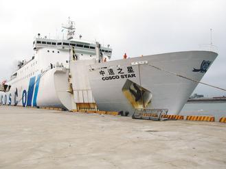 中國遠洋所屬“中遠之星”是第一艘獲準兩岸直航定期航線的客貨兩用輪,去年9月6日首航,航線為“臺中─廈門”及“基隆─廈門”,每周往返各一航次。除載運大陸游客赴臺旅游,貨運則鎖定臺灣友達等面板大廠,將面板半成品運回臺灣加工。