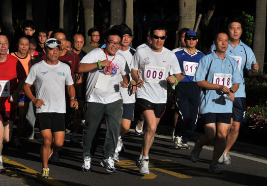 馬英九當(dāng)天上午參加路跑活動,少了過去背心式運(yùn)動衫和小短褲,在二千多名選手中,他的運(yùn)動服已不再顯得“特別”了。當(dāng)天,馬英九穿的短褲也比較以前穿的略有不同,顏色較深,不像過去較愛鮮艷的顏色,短褲的長度也稍稍加長了些。