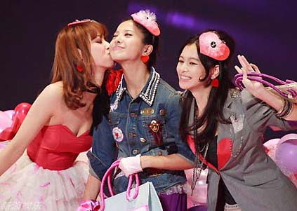 徐若瑄日前在微博上炮轟經(jīng)紀(jì)公司冷落她,引發(fā)各界關(guān)注,但是這件事并沒有影響她在臺(tái)上的演出,秀出翹臀、眨眼裝可愛。粉紅色短褲搭配黑色高跟鞋,讓她的腿顯得特別修長(zhǎng),既性感又可愛的扮相獲得滿堂彩。