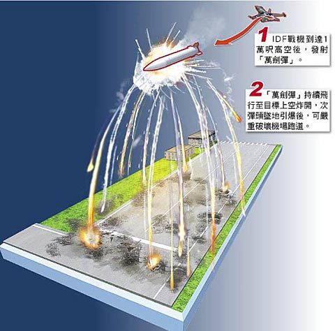林郁方發(fā)布新聞稿表示,“萬(wàn)劍”系統(tǒng)內(nèi)裝有上百枚次彈頭,具遠(yuǎn)距遙攻能力,除可用于破壞、癱瘓機(jī)場(chǎng)跑道外,對(duì)部隊(duì)集結(jié)區(qū)、港口裝卸區(qū)、飛彈及雷達(dá)陣地等,也有極大殺傷力。
