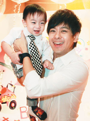 中新網(wǎng)9月17日電 據(jù)臺灣《聯(lián)合報(bào)》報(bào)道,臺灣藝人林志穎寶貝兒子Kimi16日慶周歲,林志穎為他高調(diào)慶生,不但親自布置場地當(dāng)起主持人,并請來30多位包括名模王麗雅夫妻檔、鐘漢良等親朋好友見證兒子“抓周”儀式!靶⌒≈尽币埠軤帤猓谝淮巫チ诵⌒凸P記本電腦后,馬上又握住方向盤與麥克風(fēng),儼然是林志穎接班人。